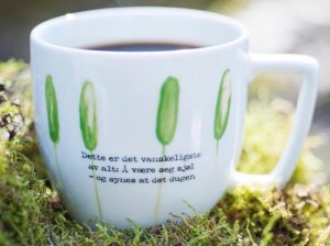 Børli assosieres med andre ord med det funksjonelle og jordnære. Koppen er brukervennlig slik Hans Børli og hans dikt er brukervennlige. Børli er en dikter for mannfolk i arbeid, en som kan by deg et oppmuntrende ord for dagen slik en kopp kaffe kan kvikke deg opp.