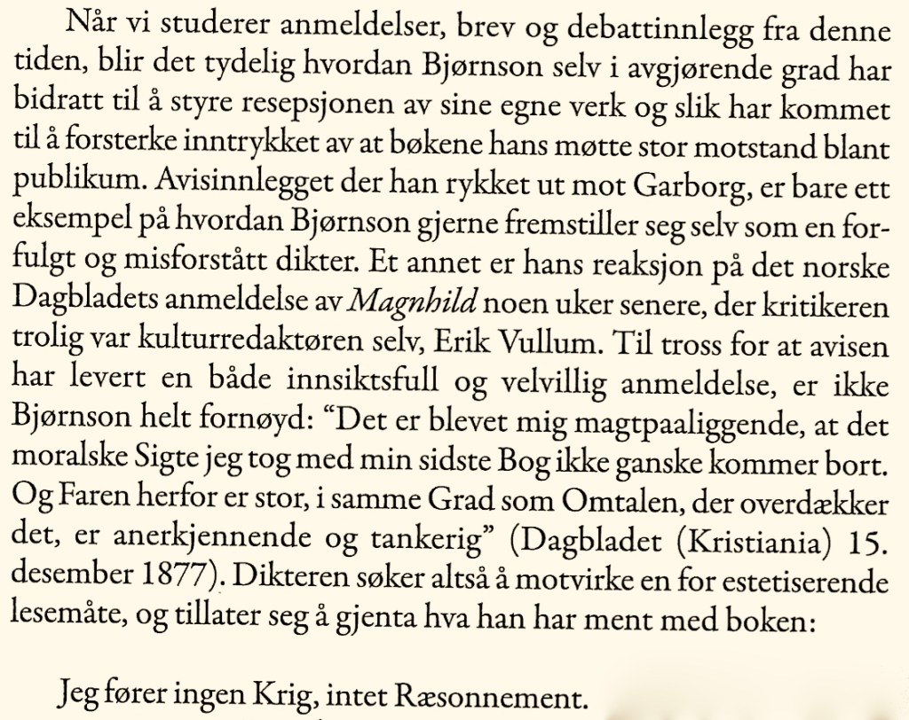 Kroglunds stadige utrykninger i pressen minner meg om Bjørnstjerne Bjørnson, uten sammenlikning for øvrig, som utrettelig skrev avisinnlegg etter avisinnlegg for å korrigere sine kritikere – selv når anmeldelsene var positive. Han hadde åpenbart behov for å ha full kontroll over resepsjonen av sine verk.