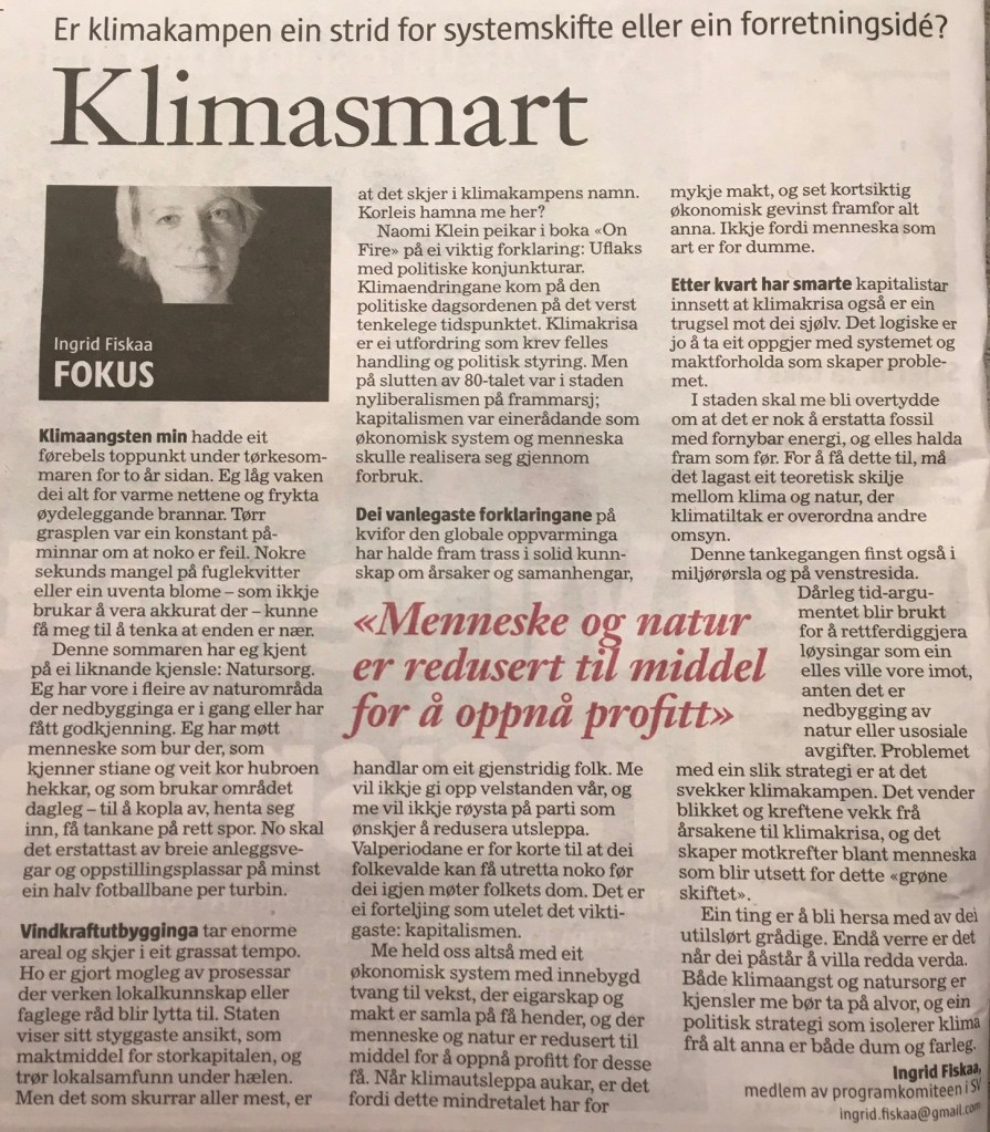Selv ser jeg fram til å undervise i klimalitteratur kommende semester, delta på workshop i Berlin om naturforestillinger i forandring, og kanskje skrive sporadisk her på bloggen. Men om jeg også kan yte et beskjedent bidrag for å bevare artsmangfoldet i vår unike avis- og tidsskriftflora, stiller jeg opp med glede.